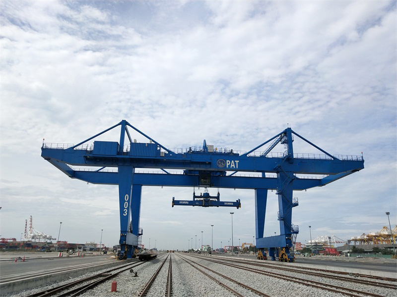 轨道式集装箱门式起重机适用于集装箱堆场和铁路集装箱中转站的国际标准集装箱的搬运及装卸,通过钢轮支撑在轨道上、以市电为动力的起重机械。其设计、制造、检验执行DIN、FEM、IEC、AWS、GB等国内外标准以及新颁布的国家标准。该机性能稳定,寿命长,生产效率高,作业范围广,使用、维护、保养便捷。其由大车、龙门架、电缆卷筒、小车以及集装箱专用吊具等组成。具有完善的安全指示和过载保护装置,有效地确保操作人员和设备的安全。电气驱动采用全数字式交流变频、PLC控制调速特有技术,控制灵活、精度高。标配国内外品牌外购件确保整机质量。